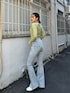 李 相美(EMODA)のデニムパンツ「ドットラインハイウエストフレアパギンス」を使ったコーディネート