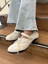 【knit】 クロスのデザインで細見え効果💖 【denim】 スタイリングに合わせやすいシンプルさとエッジを効かせたバックスタイルデザインがポイント🩵 身長162cmでXSサイズ着用 【shoes】 ヒール低めのミニマルなシルエットに、全体的にパッファーの凹凸を出した存在感のあるデザインに🤍 普段24.5cm着用