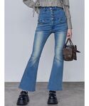 【knit】 フィットシルエットですが、柔らかい風合いの糸と伸縮性のあるリブ編みで着心地も◎ 【denim】 釦や切り替えのみをポイントにコルセットのようにウエストを綺麗に見せてくれます🩵 身長162cmでXSサイズ着用 【pumps】 ヒール低めのミニマルなシルエットに、全体的にパッファーの凹凸を出した存在感のあるデザインに🤍 普段24.5cm着用 【bag】 バックルや持ち手の付け部分など、所々でメタルを付けクールな印象に🖤