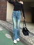 【knit】 フィットシルエットですが、柔らかい風合いの糸と伸縮性のあるリブ編みで着心地も◎ 【denim】 釦や切り替えのみをポイントにコルセットのようにウエストを綺麗に見せてくれます🩵 身長162cmでXSサイズ着用 【pumps】 ヒール低めのミニマルなシルエットに、全体的にパッファーの凹凸を出した存在感のあるデザインに🤍 普段24.5cm着用 【bag】 バックルや持ち手の付け部分など、所々でメタルを付けクールな印象に🖤