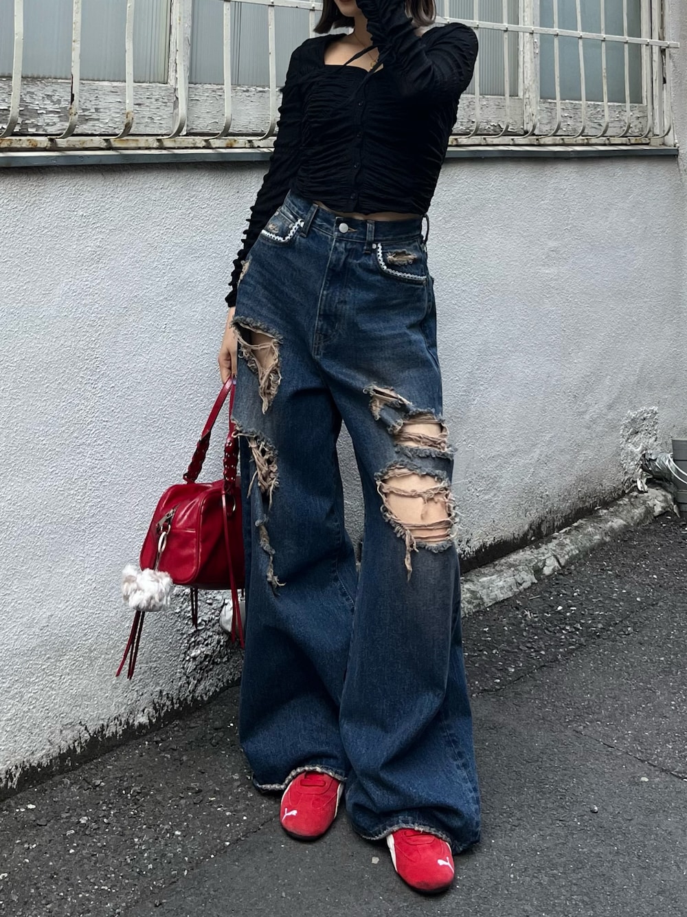 【tops】 身頃には裏地を付けているのでインナーを気にせず着用して頂けます🖤 【denim】 程よく厚さがあるため生地が丈夫で、穿くほどに体に馴染んでいきます💙 身長162cmでMサイズ着用