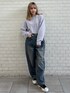 トップスはラベンダーカラーが可愛いシンプルなラメニット🪻 薄手のニットなので今は羽織のインナーに、春先は一枚でもお召しいただけます🙆♀️ 短めの丈感でどんなボトムスにも合わせやすいです( > ·̫ <⸝⸝ᐢ ) パンツはヴィンテージライクなカラーが可愛いワイドデニム👖 身長155cmでSサイズ、厚底のスニーカーで着用しております🙂↕️ 太めのデニムはずるっと履くのがとても可愛いです💘