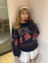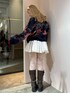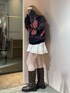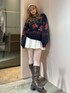 バラとリボンの柄が可愛いジャガードニット🧶 ゆったり着用できるサイズ感でミニ合わせがおすすめ✊🏻 ネイビーと赤の配色が大人っぽい雰囲気でお召しいただけます^ᴗ ̫ ᴗ^ スカートはボリュームたっぷりなコットンスカート☁️ レースタイツ合わせて甘めに着用しました🩰 ブーツは普段23cmでSサイズを着用しています!