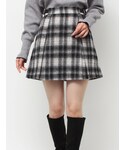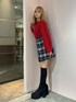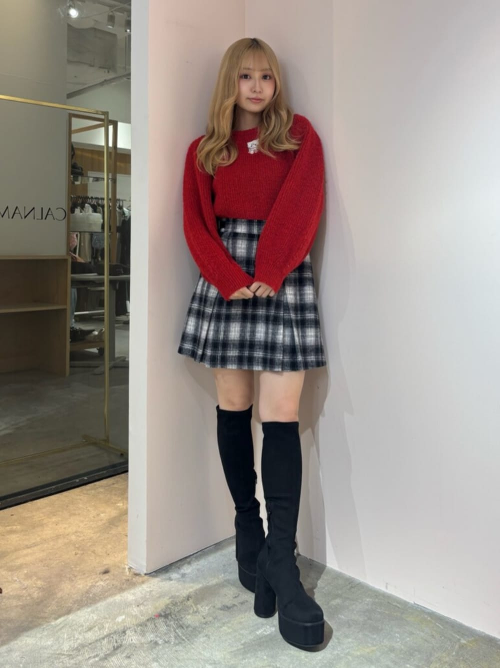 トップスはmikkoさんコラボのニットトップス♥️ 胸元にムースのワッペンが施されています🪡 ボリュームのあるお袖はもちろん、バックスタイルにもこだわったニットになっています^ᴗ ̫ ᴗ^ ボトムスはモノトーンのチェック柄でこれからの季節カラーもののアイテムと合わせるのがめちゃくちゃ可愛い✊🏻❣️ 靴はサンプルでLサイズです!