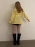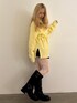 トップスはゆったり丈のイエローニット🌼 ブラックのボタンで重厚感たっぷり💫 紐はウエストマークしたりヘアアクセに使うのも✊🏻 ボトムスは万能スウェットスカパン🐈⬛これを持ってたら毎日のコーデ選びも困りません^ᴗ ̫ ᴗ^ どんなトップスにも合わせられる万能アイテムです(∩^o^)⊃━☆゚.*・。 靴は普段23cmでSサイズです!