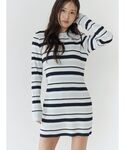 リブニットのミニワンピです🩵 ボーダーだけどリブの縦のラインのおかげでしっかり盛れる優れもの(՞⸝⸝o̴̶̷̥᷅ ̫ o̴̶̷᷄⸝⸝՞)و 靴はふだん23cmでSサイズです!