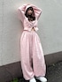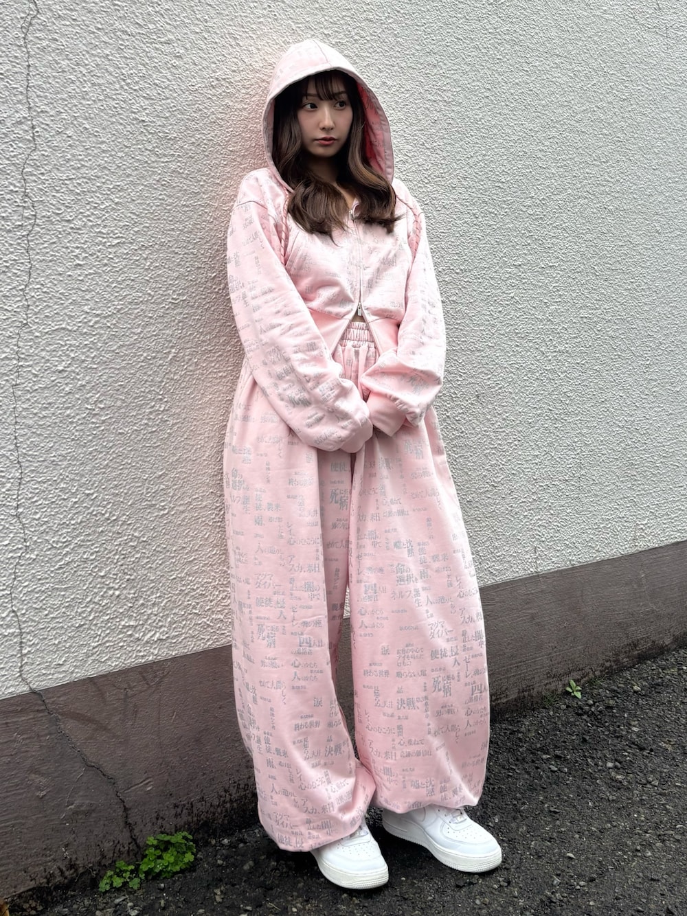 サブタイトルが全身に散りばめられたセットアップです! 身長155cmで厚底のスニーカーを履いて裾はたぽっと着用できました✊🏻 ピンクにシルバーの文字が可愛い🎀