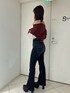 カジュアルコーデ 【トップス】 Vネックとオフショルの2wayで着用できるニットトップス♡ ショート丈なのでハイウエストのボトムスと合わせて着用するのもおすすめです! 【デニム】 大人気のBACKクロスフレアパンツです。 後ろがクロスになってるのでショート丈のトップスと合わせると背中が少し見えて可愛いです!❤︎ 160cm XSサイズ 【ブーツ】 毎年人気のシンプルな厚底ブーツです。 シンプルなのでどのコーデにも合わせやすいです! 安定感もあるので歩きやすいブーツです。 160cm Mサイズ