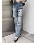 【トップス】 大人気のブリーチ加工で着心地の良いニットトップス🧶 ダブルファスナーなのでお好みでファスナーを調節して頂き色んなスタイリングが楽しめます♡ 【デニム】 大人気のビジューワイドパンツ✨ 膝のダメージは膝より少し上にあるので広がりにくく着脱もしやすいです! 161cm Sサイズ着用 【シューズ】 定番のポインテッドミュールが高低差、安定感がアップして登場しました! シンプルなのでどのコーデにも合います。 23.5cm Mサイズ