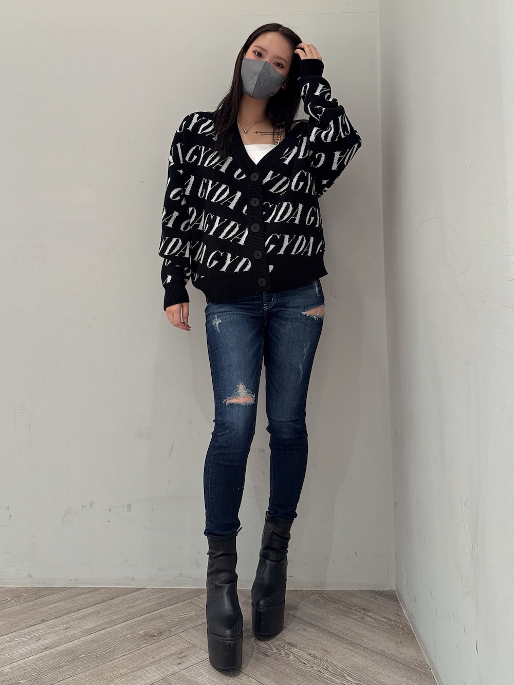 【カーディガン】 ロゴが立体的に見えるカーディガン♡ Vネックなので中にインナー入れて1枚で着ても 羽織りで着ても可愛い♡ オーバーサイズなのでスカート合わせでもデニム合わせでも可愛いです🩷 【インナー】 チェーンが付いたパット付きのインナーです、 パットのホールド感があり何合わせても使えます⭕️ 【デニム】 大人気のSIDERIPPEDデニムがハイウエストになって登場しました✨ ハイウエストなので脚長効果抜群です🤩 161cm Sサイズ 【シューズ】 毎年人気のシンプルなショートブーツです。 ヒールは高いですが前後に高低差が無く安定感があり脚長効果と細見え効果が期待できます! 23.5cm Mサイズ
