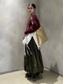 【トップス】 モール糸を使用した滑らか肌触りで柔らかく温かいショートトップス。 シャツやワンピースなどのレイヤードスタイリングにオススメです。同素材でボトムも展開しているのでSET UPでの着用もオススメです。 【シャツ】 UN3D.定番のバックギャザーシャツ。 フロントにも縦のギャザーを加え、1枚でもレイヤードスタイルのインナーにも使って頂ける1枚です。 【スカート】 手作業でしか表現出来ない複雑なハンドプリーツは職人がひとつひとつ丁寧に仕上げいます。 程よくハリ感のある生地を使用し、ふわっとボリュームのあるバルーンシルエット。 様々なシルエットのトップスと合わせやすい1枚です。