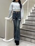 【トップス】 ビジューデザインが派手可愛いスウェットです🫧 カジュアルだけどカジュアルすぎないのが嬉しいポイント✨ スカートにもパンツスタイルにも合わせやすいのがありがたい♪ 【ボトムス】 オールシーズン使える濃いめのブルーを着用しています✨ 厚底と合わせたかったので、長めに着るためにSサイズを着用しています! 【ブーツ】 スウェード生地のショートブーツで、ボリューム感があるので足が細く見えます♪ 安定感のあるソールで自然に身長を盛れちゃうのも嬉しいポイント🙆♀️ 普段Lサイズが入らない私でも、薄手のソックスなどで合わせれば履くことができました!