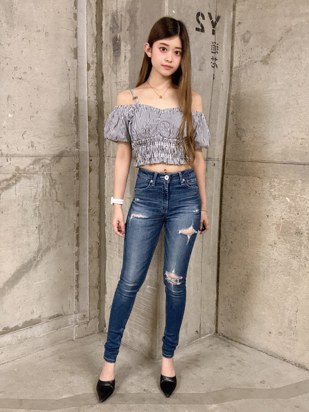 Hitomi(GYDA)のシャツ/ブラウス「Symmetry GYDAチャームオフショルブラウス」を使ったコーディネート