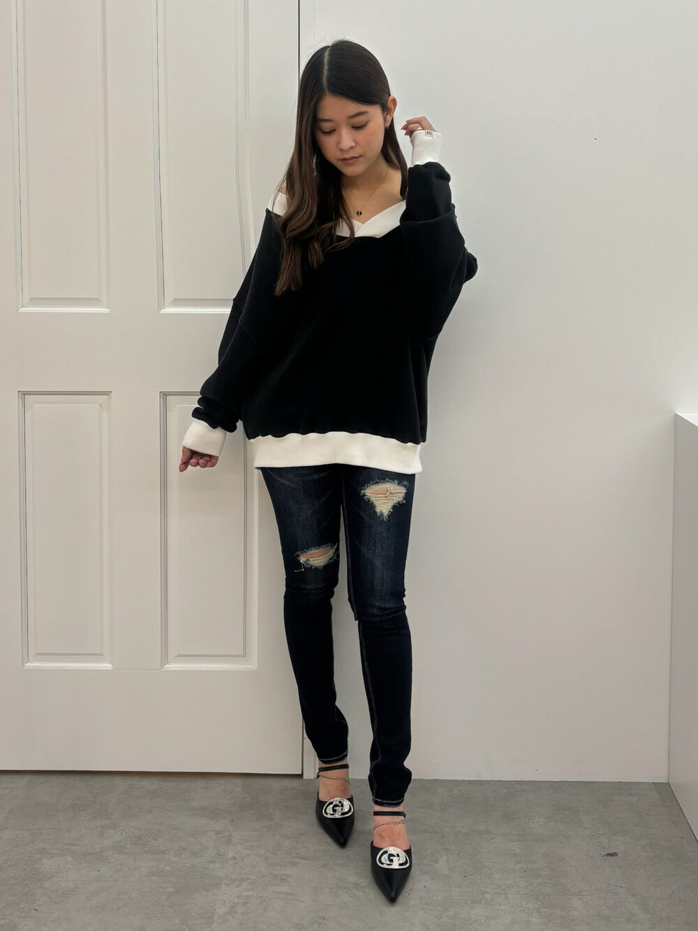 Hitomi(GYDA)のスウェット「BICOLOR POSH BUNNY Vネックスウェットトップス」を使ったコーディネート
