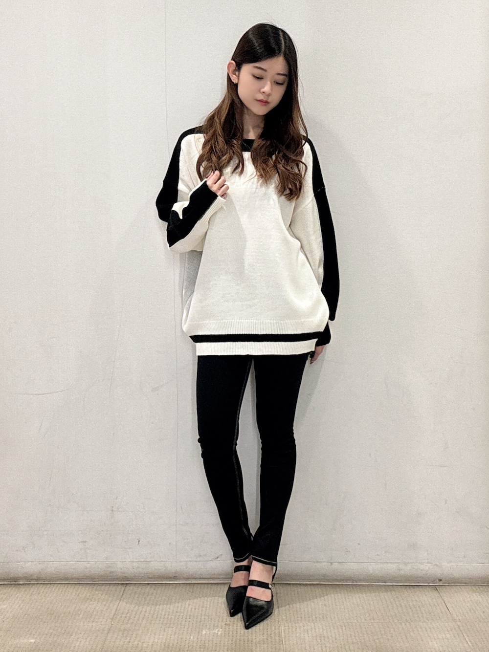 Hitomi(GYDA)のニット/セーター「GYDALMATIAN BICOLORニットトップス」を使ったコーディネート