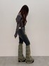 【トップス】 加工感が可愛いデザインのトップスです!ショート丈なので、ハイウエストのボトムスと合わせるのがおすすめです❣️ 【パンツ】 フリンジデザインのフレアデニムパンツです!フレアシルエットなので、美脚効果抜群です❣️150㎝のSサイズ着用しています! 【シューズ】 ベルトデザインのサンダルです!高さが13㎝ありますが、ヒール部分が太めに作られているので安定感+歩きやすいサンダルです❣️23.5㎝のMサイズ着用しています!