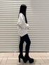 【トップス】 GYDA総柄のニットトップスです!サラッとした生地なので、着心地抜群です✨ショートパンツ等合わせてワンピース風にも着用できます◎🙆🏻♀️ 【パンツ】 GYDA大人気シリーズ、ウエストクロスデニムパンツです!ショート丈のトップスと合わせるとバッククロスが見えて可愛いです❤️150cmのSサイズ着用しています! 【シューズ】 シンプルなバルキーショートブーツです!高さが13cmありますが、爪先と踵の高低差が少ないのでとにかく歩きやすいです❣️23.5cmのMサイズ着用しています!