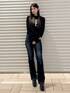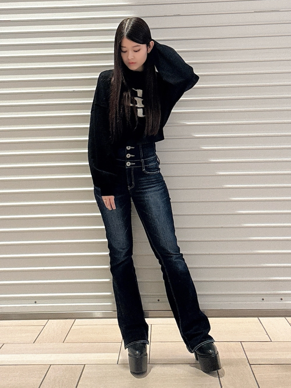 【トップス】 フロントにロゴが入ったニットトップスです!ロゴにラメ感がデザインされているのがポイントです!サラッとした生地なので、着心地抜群です❣️ 【パンツ】 GYDA大人気シリーズ、ウエストクロスデニムパンツです!ショート丈のトップスと合わせるとバッククロスが見えて可愛いです❤️150cmのSサイズ着用しています! 【シューズ】 シンプルなバルキーショートブーツです!高さが13cmありますが、爪先と踵の高低差が少ないのでとにかく歩きやすいです❣️23.5cmのMサイズ着用しています!