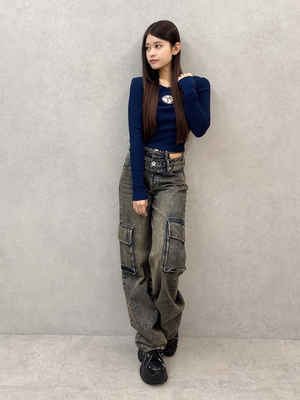 【トップス】 胸元のロゴがラメになっているニットトップスです!ロゴのキラキラがGYDAっぽく着用できます!上辺りにデザインされているので、安心して着用できます! 【パンツ】 ダブルウエストデザイン+カットアウトのデザインのワイドパンツです!ルーズなシルエットなのでとにかく着用しやすいです♪150㎝のSサイズ着用しています! 【シューズ】 ソールのボリューム感がある厚底スニーカーです!クッション性があるので、疲れにくく歩きやすいです‼️23.5㎝のMサイズ着用しています!