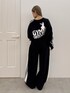 【トップス】 前にはワンポイントのバニー、後ろにはロゴが大胆にデザインされたスウェットトップスです!セットアップで着るのがオススメですが、デニムと合わせるのも◎ 【ボトムス】 太ももにバニーが入ったスウェットパンツです!サイドラインの切り替えが、脚のラインを綺麗にみせてくれます♪ 【シューズ】 レースアップデザインの厚底ブーツです!爪先と踵の高低差が少ないので、歩きやすく疲れにくいブーツです!23.5cmのMサイズ着用しています!