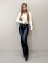 【トップス】 シンプルなポロニットトップスです!首元はスッキリしていて、シンプルなのでどんなコーディネートにも合わせやすい1枚です✨ 【ボトムス】 GYDA大人気シリーズのバッククロスフレアデニムパンツです!ショート丈のトップスと合わせると後ろのクロスが見えて可愛いです🩷フレアなので、美脚効果抜群です!150㎝のSサイズ着用しています! 【シューズ】 シンプルなバルキーショートブーツです!高さが13㎝ありますが、爪先と踵の高低差が少ないので歩きやすく疲れにくいです!23.5㎝のMサイズ着用しています!
