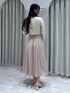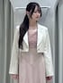 jacket🌷(アイボリー/Fサイズ) 着るだけできちんと感の出るショートジャケット💫マーキュリーのワンピースやハイウエストのスカートに合わせて着ると、360°どこから見ても脚長効果抜群です😻🫶🏻 袖が長めに作られているのも、クロップド丈とのバランスのお陰で腕も長くスタイルアップ🎶165センチで手の甲が隠れる程の長さです! 裏側もお袖周りは同素材のため、長すぎる方はロールアップしても可愛いです(`・ω・)b🌟 dress🌷 チュールのボリューム感がポイントのオケージョンドレス🤍Vネックになっているので、ボリューム感はありつつすっきりした印象で着られます!色味もくすんだピンクになっているので、甘すぎないカラーです🩰🤍 そしてマーキュリーのドレスは何よりシルエットがとっても綺麗!ハイウエスト切り替えでスタイルアップ間違いなしなのに、後ろがゴムで本当に着やすいですෆ ̫ ෆ bag🌷 巾着のようなくしゅっとした形が可愛いハンドバッグ♡マグネットで開閉出来るようになっており、柔らかい牛革なので意外と収納力も⭕️ レザーの紐でショルダーバッグにも、チェーンでハンドバッグにも使えるのが便利です👍🏻 shoes🌷 きちんと感の出る春らしいローファー風ミュール🎶 マーキュリーの他の靴と比べても幅が広めのため、ゆったり楽ちんに履いていただけます❕普段25センチの私が履いても、爪先まで狭くない❕ しっかり足の甲も隠れる形なので、歩いた時の安定感も抜群!!!フェイクレザーの生地も柔らかくふんわりした履き心地で、長時間歩いても疲れ知らずです( ˶>ᴗ<˶)🎶