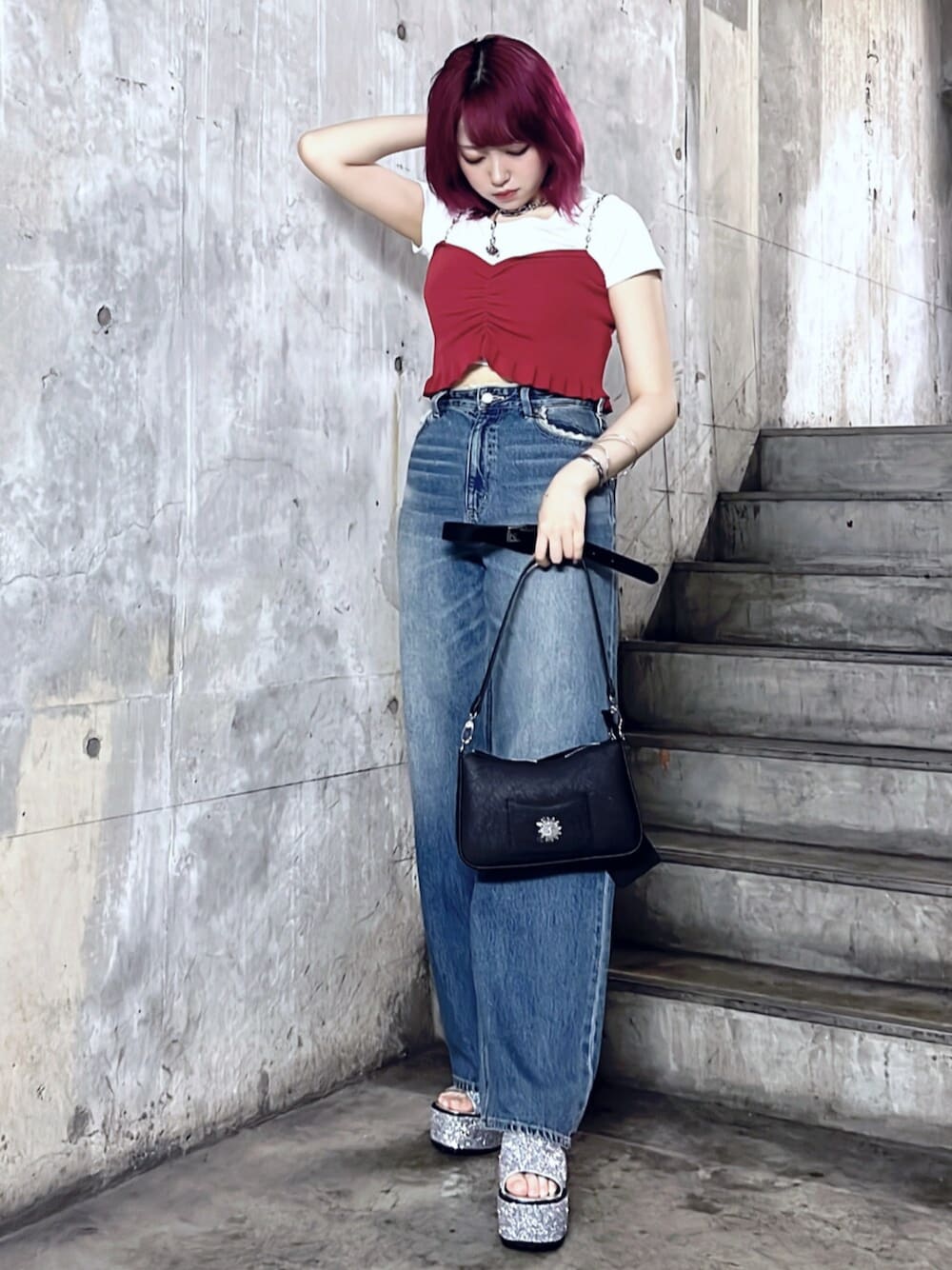 Aoi(EVRIS)のショルダーバッグ「ミラーセットチェーンBAG」を使ったコーディネート