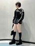 ブルゾン セットアップアイテム🖤 昨年大バズしていたセットアップが再登場! ボアの可愛さ×デニムのカッコ良さ で無敵の可愛いが完成されます! 柔らかい素材なので中にも着込めます トップス 秋初めにピッタリなサラッとした肌触りのトップス 腕の裾が広がっていてあざとい印象に🎶 ウエスト周りはぴたっとしすぎず、お腹周りかばーしてくれます! スカート セットアップアイテム🖤 おしりのポケットにボアが付いていてとっても可愛い! ポケットの位置も高いので腰の位置が上がって見えます インパンがついているので1枚で安心です 164cmでS着用しています バッグ EVRISの太陽モチーフが可愛い☀️ デザイン個性的でEVRISらしく 容量もペットボトルとハンディファン同時に入れられるくらいしっかり大きいです! ネックレス 3連ネックレス チェーンが大きめなので存在感があります! ブーツ 【秒盛れブーツ】ご存知ですか?♡ 履くだけで一気に脚長効果抜群です! ソールがしっかり高いですが、片足約490gなのでとっても軽く、足が疲れません! 高低差もなく足楽ちんです🎶 普段23~23.5cm着用していてMサイズ履いています