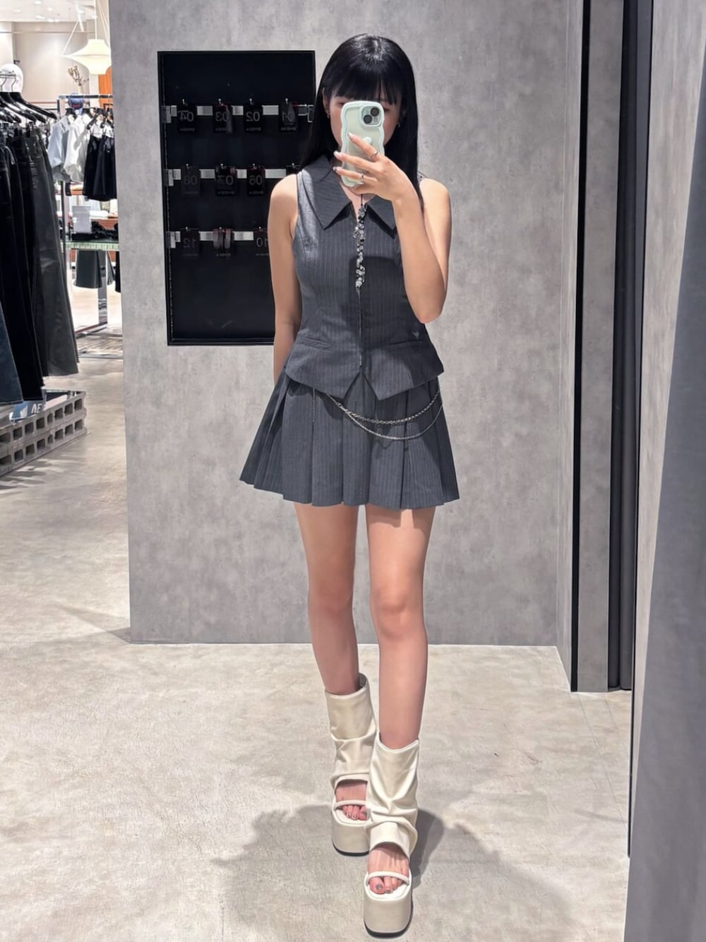 【𝐎𝐍𝐄𝐏𝐈𝐄𝐂𝐄】 プリーツスカートと襟付きデザインの 組み合わせが可愛いセットアップみたいな ワンピースです!👗💗 ウエストのシルエットが綺麗に見え、 大きめの襟も顔周りをすっきり見せて くれます♪スカートも程よいプリーツ感と 広がり過ぎない形で、ガーリーに見えすぎ ないデザインです!腰回りと足が細見え する美シルエットなスカートです✨✨ チェーンも取り外し可能なので、 お持ちのデニムに付けても可愛いです♡ モード感のあるデザインで、1枚で トレンドを先取りできちゃうワンピース です🤭❣️ 私は157cmでSサイズを着用しております! 【𝐒𝐇𝐎𝐄𝐒】 EMODAらしい美厚底サンダルにカバー デザインした、歩き易さ+トレンド感を 兼ね備えた欲張りサンダルです!👡💓 カバーデザインでボリュームがあるので、 足が一気に細見えします✨ ミニ丈コーデで足の露出が気になる方にも オススメで、露出感を抑えて美脚に なる上、トレンド感もばっちりです❣️❣️ マットな仕上がりなのでどんなコーデ にも馴染みやすく、傾斜もフラットで軽く 歩いてて疲れない万能サンダルです!💖 私は24cmでMサイズがピッタリでした!