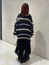 ○ニット 配色が可愛いボーダーニットです! 大胆なダメージが沢山入っていて袖口が外せるので、ベストとしてもお使いいただけます。 私は半分開けて肌見せしています! 中にシャツを仕込んだり、シアートップスを入れても可愛いです! 152cmでヒップが隠れる大きさです。 ○スカート 素材はレースで両サイドにリボンが付いています!絞れるので、自分の好きなシルエットでお使いいただけます。 前後で裾の長さが違うので横から見た時のシルエットも可愛いです♡ ○シューズ 23.0cmでMサイズ着用。 パールリボンのストラップを靴紐につけてみました🎀