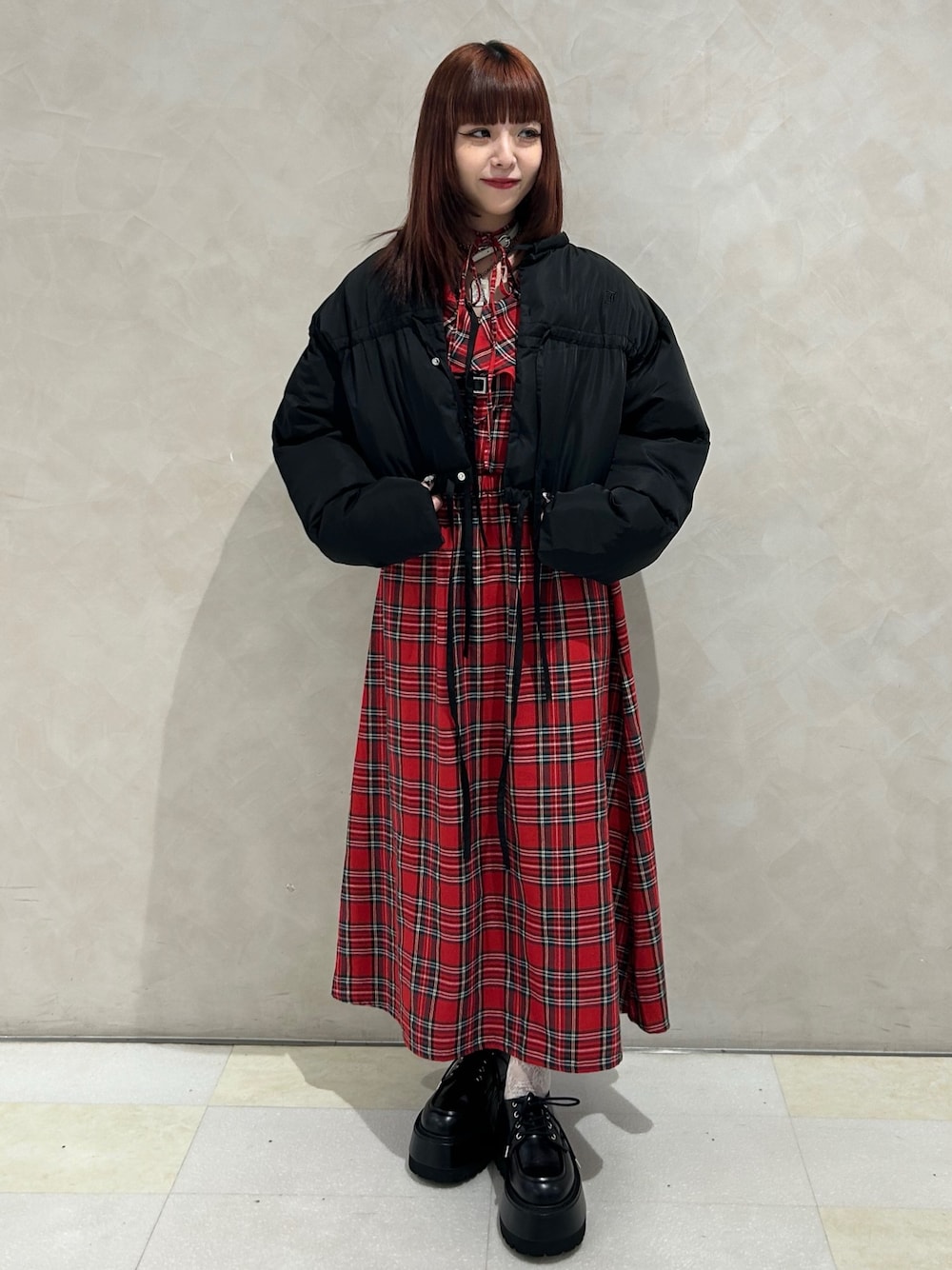 ALICE(jouetie)のワンピース「ショルダーフリルベルトロングチェックワンピース」を使ったコーディネート