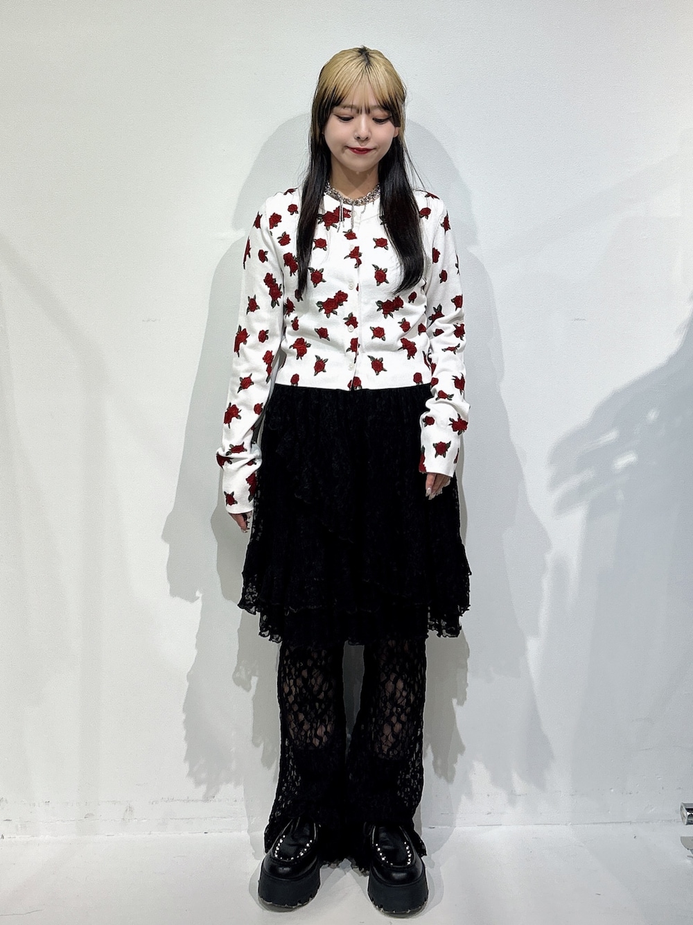 〇カーディガン サラッと着られる春に調度良いカーディガンです!コンパクトめなので、上にアウターも羽織やすいです◎ 胸元のロゴがラメなのもポイント♡ ○パンツ レースのパンツとスカートがセットになってるアイテムです! ウエストはゴムで楽に着用できます! デニムにスカートをレイヤードするのも可愛くてオススメです♥ ○シューズ 23.0cmでMサイズ着用。