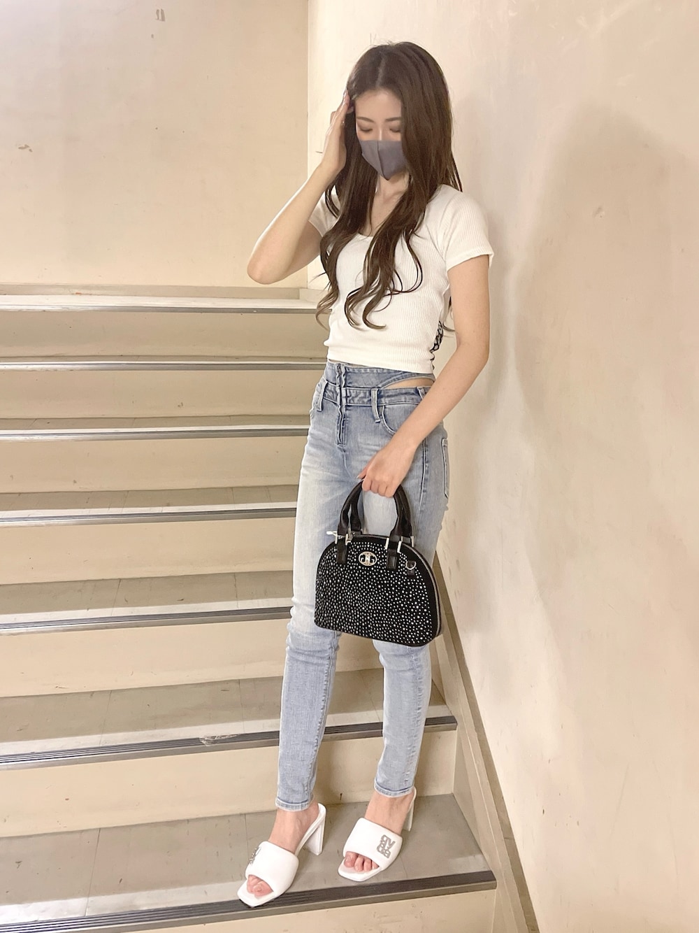 きれいめカジュアルコーデ🩵 〈トップス〉 大人気のレオパードバックリボンTOPS❤︎ お友達とオソロコーデは映え間違いなしです😊 バックリボンがポイントになるのでボトムはシンプルなものがオススメです! スカート、デニムに合わせやすいです! 〈ボトムス〉 サイドにカッティングがありデザイン性のあるセクシーなデニムパンツです👖 ウエストにデザインがあるのでフロントファスナーでスッキリとした仕上がりです! ウエストを見せれるショート丈のトップス合わせがオススメです❤︎ 〈シューズ〉 ふわふわのパディングサンダルです! ふわふわなので靴擦れもしにくくヒールは高めですが軽くて歩きやすくて足長効果抜群です🩷 シンプルなデザインなのでどんなコーディネートでも合わせやすいです! デニムやワンピース合わせで着用していただくのがオススメです! 〈バック〉 ラインストーンがふんだんに散りばめられているBAGです! 肩掛けベルトも付いているので2wayでお使いいただけます!😊 シンプルなワンピースやデニムコーデに合わせていただくのがオススメです❤︎