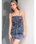 デニムワンピースコーデ✨ 〈ワンピース〉 フロントジップデザインのデニムワンピースです😊 肩紐は取り外し可能で素肌にフィットするような作りになっています✨ インナーパンツ付きなので短くても安心して着用できる着やすさ抜群の1着です🫶 私はSサイズ着用してます♡ 〈ジャケット〉 ダメージ感が可愛いデニムのGジャンです✨ ショート丈なのでデニムでも重くなりすぎず着用でき、すっきりスタイルアップさせてくれるアイテムです😊 セットアップで着用できる同じ加工のデニムのスカートやGYDAで人気のウエストクロスのBLKやワンウォッシュのBLKに合わせても可愛いです🩷 〈シューズ〉 厚底のプラットフォームサンダルです✨ 軽量の快適な履き心地でとっても歩きやすいです!スタイルアップ効果抜群なのも嬉しいポイントです😊 私は23.5cmで普段はMサイズですが、 少し大きめの作りだったのでSサイズでピッタリでした🫶