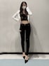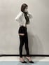 〈インナー〉 GYDAで定番のビスチェです! パット付きなので1枚で着用できちゃいます✨ トップスのインナーで着用するとデコルテのバインダーがとっても可愛いです🩷 1枚あるだけでどんなコーデにも使えるのでオススメです🫶 今回はショートパーカーのインナーとして着用してみました! 〈パーカー〉 大人気のショートパーカーです♡ キラキラとしたラメがあり薄めの素材なので春だけでなく梅雨の時期や夏の冷房対策としても季節とわず着用できます😊 後ろにはGYDAのラインストーンロゴがあり後ろ映え間違いなしに可愛いです🩷 セットアップでも着用できますが、今回はデニムと合わせて着用してみました! デニム合わせがとってもオススメです🫶 〈ボトムス〉 GYDAで定番のサイドで程よいカットダメージとっても可愛い🩷 シンプルなのでショート丈のトップスからオーバーなトップスまで幅広く着用できます! ストレッチ性がとってもよく履き心地抜群です!私はXSサイズ着用してます♡ 〈シューズ〉 GYDA定番のポインテッドミュールです! カジュアルから綺麗系のコーデまで幅広く着用できます!スキニーデニムとの相性は抜群です♡ 私は23.5cmで普段はMサイズですが馴染んでくるのでSサイズ着用でピッタリで履いてます🫶