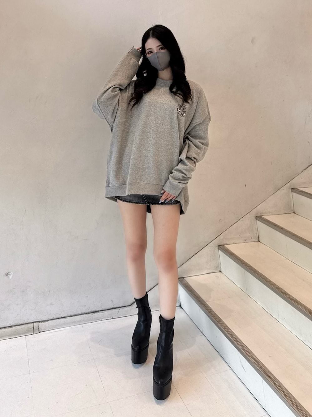 〈トップス〉 GYDA大定番で人気のドルマンスウェットです✨ 90'sムードが漂うレトロアメリカンなカレッジロゴがトレンド感プラスされて可愛いです🩷 後ろが少し長めなのでお尻もスッポリ隠れます!156cmでダボっとオーバーな感じでお尻もすっぽり隠れました😊 ワイド系のオーバーサイズ気味なボトムスと合わせてYSK風やミニ丈合わせてワンピ風にも着れちゃいます🎀 インナーにロンTレイヤードで裾からチラ見せで着用するとマンネリとしたスウェットコーデも解消でカジュアルな抜け感が出せます🫶 〈ボトムス〉 GYDA定番のデニムスカート履いてみました✨ Vintage感のある加工が施してありシンプルなデザインなのでどんなコーデにも合わせやすいです😊 インナーパンツ付きなので安心して着用できます!私はXSサイズ着用してます🩷 〈シューズ〉 毎年GYDAで発売している大人気ショートブーツのバルキーショートブーツ履いてみました🫶 ストレッチ性が効いた素材を使用しているのでしっかりとフィットするシルエットになります🩷 ミニ丈のボトムスはもちろんワンピースやスキニーとの相性も抜群です✨ ヒールは高いですが厚底なので安定感もあり歩きやすく長時間歩いていても疲れにくいです😊 脚がとっても美脚に見えるのが嬉しいポイントです🫶 私は23.5cmでMサイズ着用してます🎀