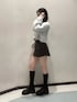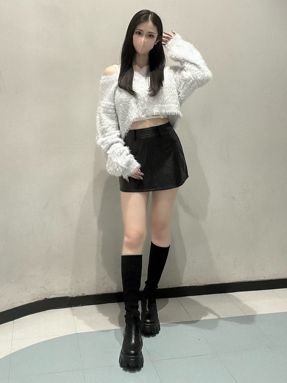 〈インナー〉 肩のところにsymmetryのロゴワンポイントのビスチェです♡ ウエストの所がデザイン性がありショート丈のトップスの下にインナーとして着用しても可愛いです🫶 カップ付きなので夏は1枚で着用しても可愛いです! 〈トップス〉 ラメのシャギーショートカーデ着てみました♡ ふわふわの着心地でゆるっとしたシルエットですがミニ丈なので女性らしさも出ます😊 合わせるアイテムによってカジュアルにも綺麗めにも着用できます! デニムで合わせるとGYDAらしいコーデになります❤︎ 今回はフェイクレザーのスカートと合わせてみました🫶 〈ボトムス〉 GYDAで毎年定番のフェイクレザースカート履いて履いてみました♡ インナーパンツ付きなので安心して着用できます! オーバーサイズのトップスの下に着用しても可愛いですがミニ丈と合わせて着用しても可愛いので色々なコーデに合わせられます😊 私はXSサイズ着用してます🫶 〈シューズ〉 大人気ニットドッキングブーツ履いてみました♡ インソールが入っているので美脚効果抜群です!長時間履いていても全く疲れないのが嬉しいポイントです😊 私は23.5cmで普段はMサイズですが馴染むとかなりゆとりが出るのでSサイズで着用してます!