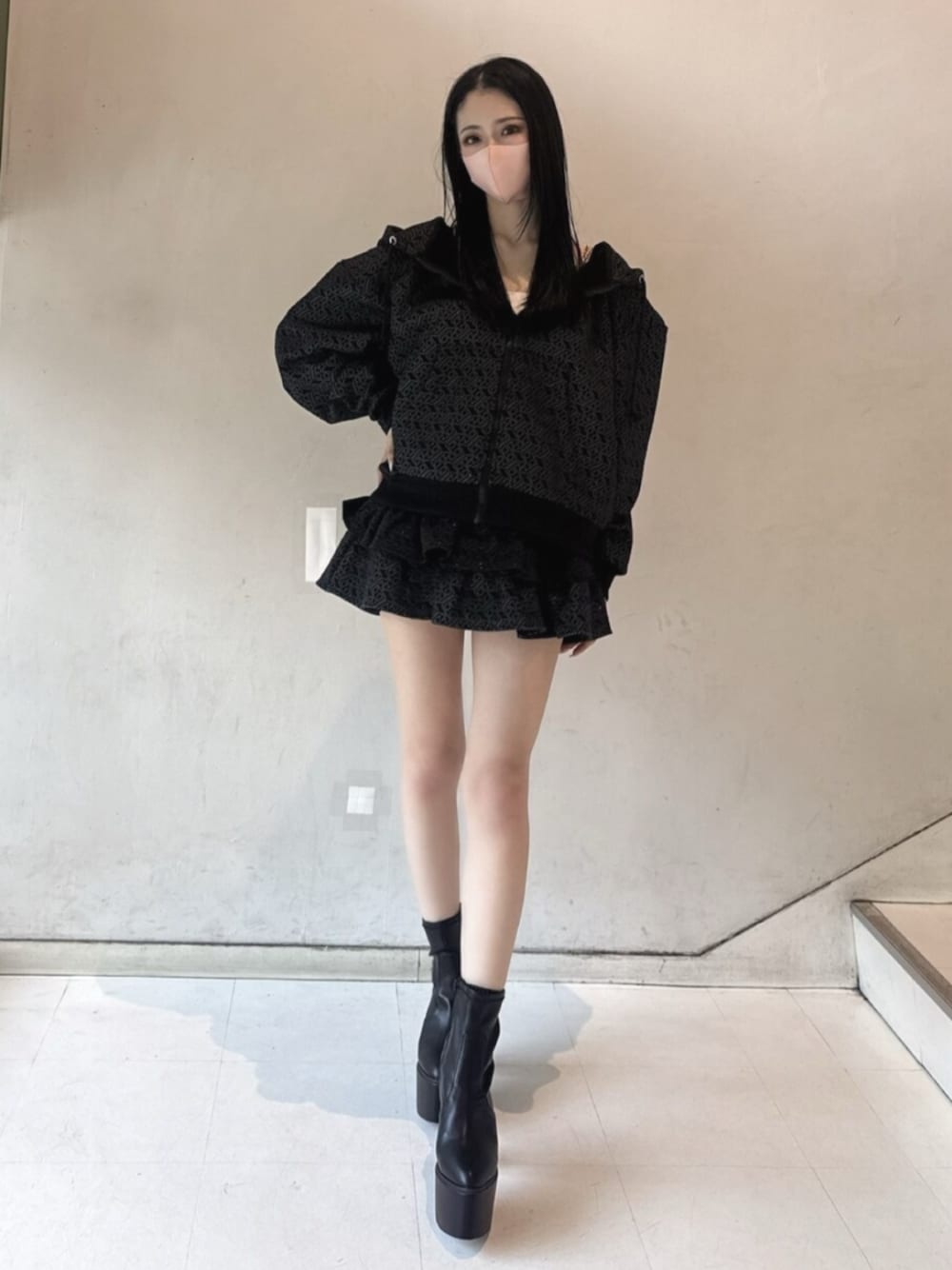 〈インナー〉 大人気チェーンビスチェ来てます♡ 夏は1枚やシアーシャツ合わせで着用がオススメです!春や秋などはパーカーなどのインナーに合わせると可愛いです🩷 〈トップス〉 グリッターのパーカー着てみました♡ ショート丈もありますが私はオーバーサイズで合わせてみました🫶 セットアップでの着用も可愛いですがGYDAらしくデニム合わせもオススメです😊 〈ボトムス〉 フリルスカート履いてみました🫶 インナーパンツ付きなので安心して着用できます!オーバーのパーカーと合わせる事でフリルがチラ見えするので可愛さ抜群です🩷 〈シューズ〉 大人気バルキーショートブーツ着用してみました♡ ヒールは高いのに安定感抜群でとっても軽いので長時間履いていても疲れにくく歩きやすいです😊 美脚効果抜群なのも嬉しいポイントです🫶 私は23.5cmでMサイズ着用してます!