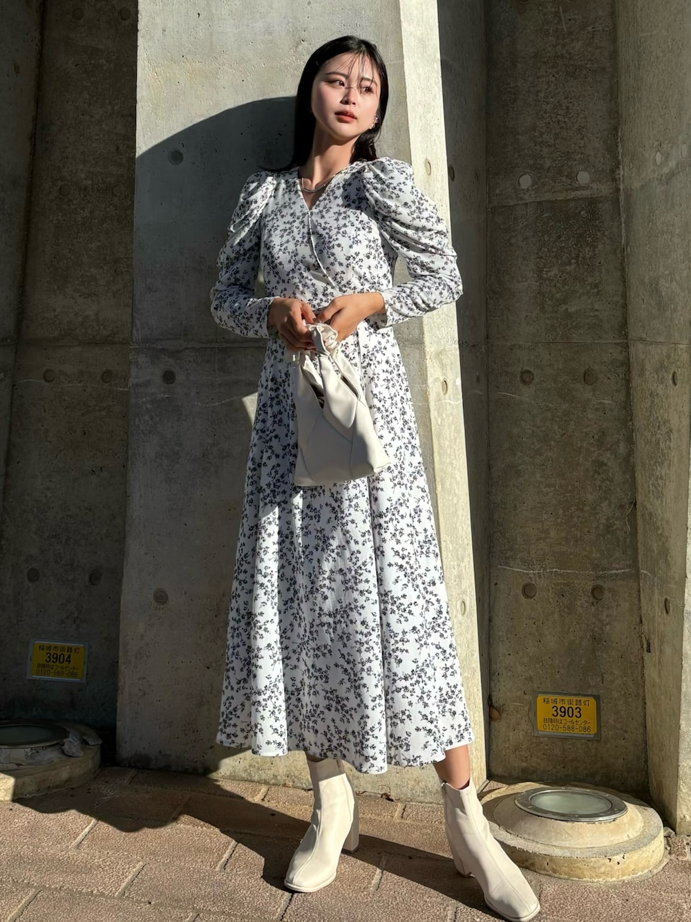 大人っぽい小花柄で春先取りなワンピース🌸 ホワイトのお色みは真っ白なベースにブラックの小花柄なので、普段花柄を着ない方でも取り入れやすくなっております! 実はヒートテックを着用しておりますが全く見えることなく今から着ていただける春アイテムとなっております!