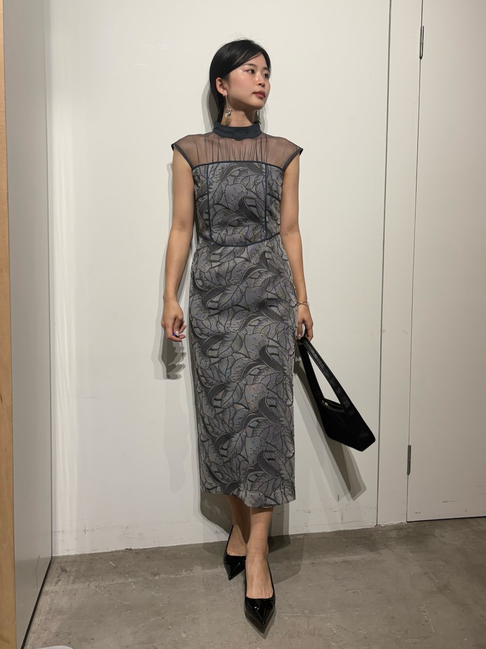 肉感のあるメッシュのダンボール素材を二重に上に被せ、フラワーモチーフのデザインも相まって素材感に一目惚れしたワンピースです♪ ぷにぷにとした素材がIラインでもボディラインを拾いすぎず、ハイウエスト位置でパイピングのはっきりとした切り替えを入れることで脚長効果もあり、挑戦しやすくなっております。 デコルテ周りはキメの細かいシアー素材で、スタンドカラーにすることで肌みせ加減を調節し上品にまとまるようになっております。 やや肩にかかるお袖にすることで、ノースリーブよりも二の腕や肩幅をカバーしてくれます。 全体的にサラッとした素材や、後ろにはスリットを入れたりと涼しげなシルエットなので、真夏までお召しいただけるのも嬉しいポイントです!
