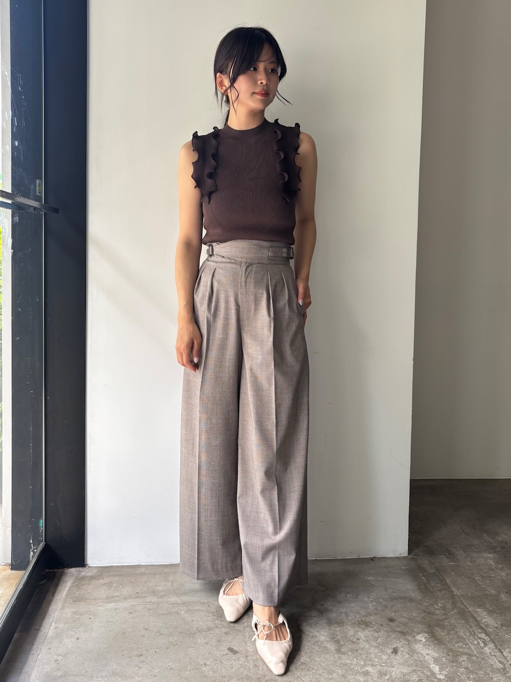 昨年も人気だったトップスに新色が追加されました...!! ショルダー部分のフリルが二の腕を細く見せてくれます。 パンツはウエスト部分が左右で長さを調整できる仕様になっているので、お好みのサイズ感でお召しいただけます♡