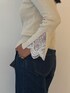 ベーシックに使いやすいデザインに、袖部分にレースをあしらったニット♡ ネップ調の素材もモダンな印象で1枚あると幅広いコーデに使えます✨