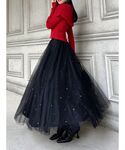 【トップス】 袖にボタンがついたシンプルで着回し力抜群のニット♡ スクエアネックで首元すっきりし、デコルテを綺麗にみせてくれます✨ 【スカート】 チュールの中にパールがあしらわれている珍しいデザインのチュールスカートです♪ うっすら透けて見えるので主張が激しくない分日常使いしやすいです! 後ろがゴムになっているので伸縮性もあり履き心地がいいです! 【ベレー帽】 ファーのベレー帽は取り入れると一気に冬らしくかわいいコーデが出来上がるのでおすすめです♪ベーシックなので色々なコーデに合います♡ 【バッグ】 フェイクレザーとゴールドの持ち手が可愛いハンドバッグ♡サイズ感もちょうど良くてデートにもおすすめ♪ 内ポケットは二つあり、1つは便利なファスナーつきです✨