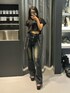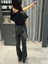 【tops】 ボックスシルエットが特徴のtopsです!生地感もさらっとしているので夏場も着やすいです✨ 【jeans】 とてもストレッチが効くのでエモダのフレアデニムの中でも、かなり履き心地が良いです✨サスペンダーがコーデのアクセントになってくれます! 【sandal】 厚底14センチのサンダルです✨普段23.5センチの私でMサイズが丁度いいです!