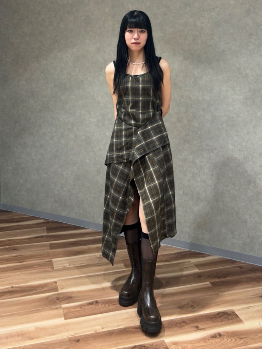 ✴︎ワンピース レイヤード風のワンピース👗トレンドのチェック柄と重ね着風の作りが可愛いです🩷 アジャスターで調節をしてインナーの上から着てもGOOD👍 デニムと合わせてきてもオシャレ度アップ⤴️です🎀🎀 ✴︎ブーツ 24.5cm Lサイズで少しゆとりあります。