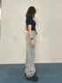 【カジュアルデニムコーデ】 [トップス]ダブルジップになっているので、抜け感が出しやすい!生地もしっかりしてるのでインナーは1枚でOKです! 【デニム】今トレンドのヴィンテージ加工!ハイウエストで綺麗に履けるので、ワイドでも太く見えないです! 【スニーカー】ソールがしっかり高さあるので、ちゃんと盛ってくれるアイテム!カジュアルコーデにももちろん、シアーソックス合わせでガーリー系でも履けちゃいます!