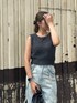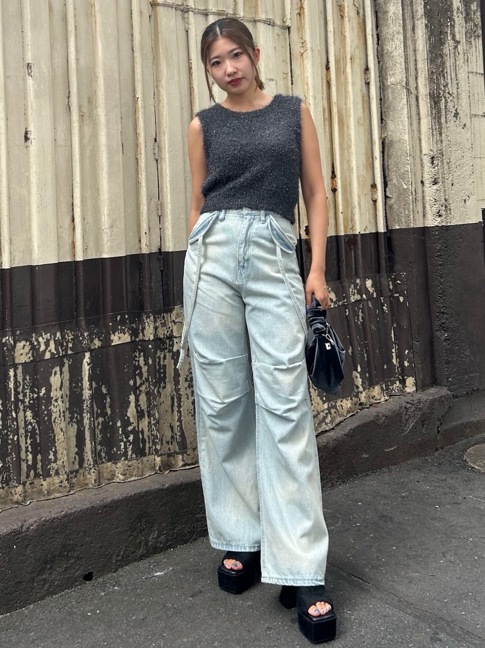 【キレイめワイドデニムコーデ】 ワイドデニムにノースリーブ×フレアヒールでキレイめコーデを組みました✨ [トップス]ノースリーブのニットタンク🩶毛長の糸で作られているので着膨れせず細見えしてくれる!首周りも詰まってないので顔周りスッキリ☀️短すぎない丈感なので色々なボトムスに合わせやすいです☑️ [デニム]ストラップデザインが特徴的なワイドデニム🩵ダボっとしてるシルエットだけどスタイルをよく見せてくれるデニム🌟158cm/Sサイズで裾がちょうど付くか付かないかくらいです😌 [サンダル]フレアヒールになってる12cmの厚底🖤キレイめに見せてくれるので、ワイドデニムで合わせても大人っぽく仕上げてくれます💫ふかふかなので1日中歩いても疲れないです🤫23.5/Mサイズでぴったりです🎀
