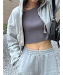[トップス]ショート丈のスウェットパーカー🩶ライトグレーの色味だけキラキラした加工になってるので、めちゃめちゃかわいく着れます✨ [スカート]フリルデザインのスウェットミニスカート🩶フリルデザインなので、シルエットですぎず、綺麗に履けます🎶158cmでももあたりの丈感です! [ブーツ]去年大人気だったカバータンクブーツか今年も再入荷❤️🔥ヒールを感じないのにしっかり盛れるので、この冬大活躍間違いなしです!23.5cm/Mサイズでちょうどいいサイズ感です!