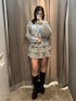 [トップス]ショート丈のスウェットパーカー🩶ライトグレーの色味だけキラキラした加工になってるので、めちゃめちゃかわいく着れます✨ [スカート]フリルデザインのスウェットミニスカート🩶フリルデザインなので、シルエットですぎず、綺麗に履けます🎶158cmでももあたりの丈感です! [ブーツ]去年大人気だったカバータンクブーツか今年も再入荷❤️🔥ヒールを感じないのにしっかり盛れるので、この冬大活躍間違いなしです!23.5cm/Mサイズでちょうどいいサイズ感です!