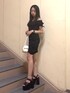 【ワンピース】低身長の方にはミニワンピで 高身長の方はフレアパンツ合わせもかわいいです♡ギャザーになっているのでヒップラインも気になりません✨ 【サンダル】 約15cmある厚底サンダルです クロスのデザインがきれいめ・かわいい系で着用していただけます💓